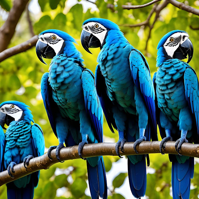 The Glaucous Macaw, also known as the Blue Macaw or Lear's Macaw, is a large parrot native to South America. It stands out with its bright blue feathers covering most of its body, a large curved beak, and distinctive yellow eye-rings. Unfortunately, the Glaucous Macaw is a rare species and is critically endangered.